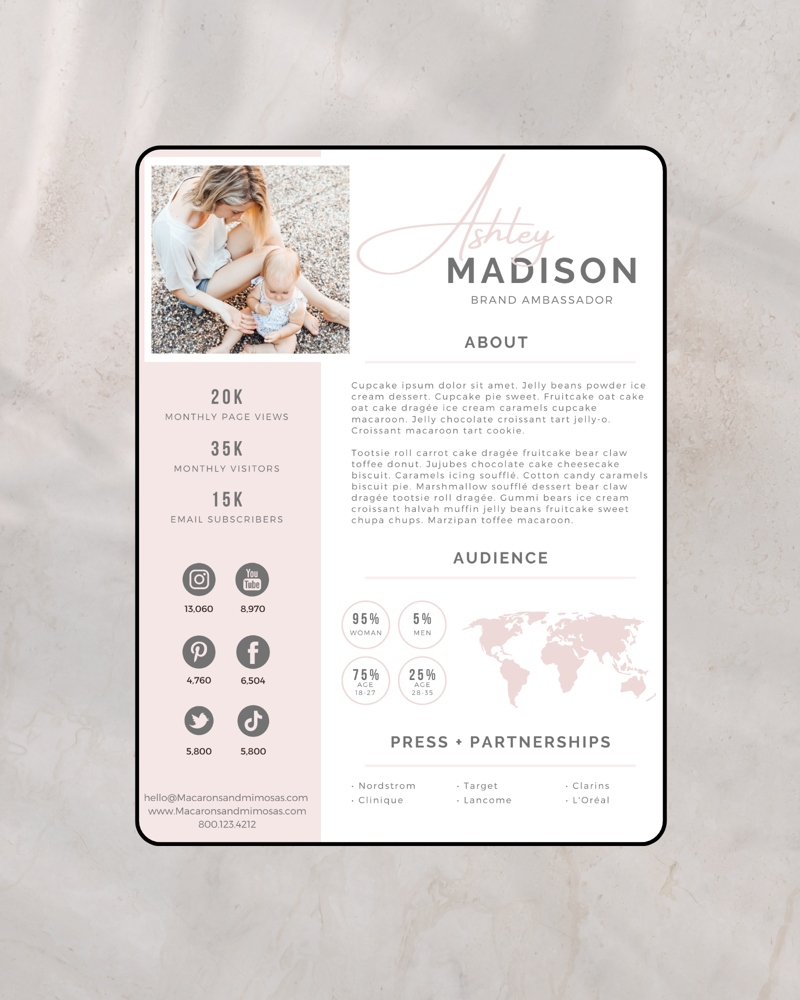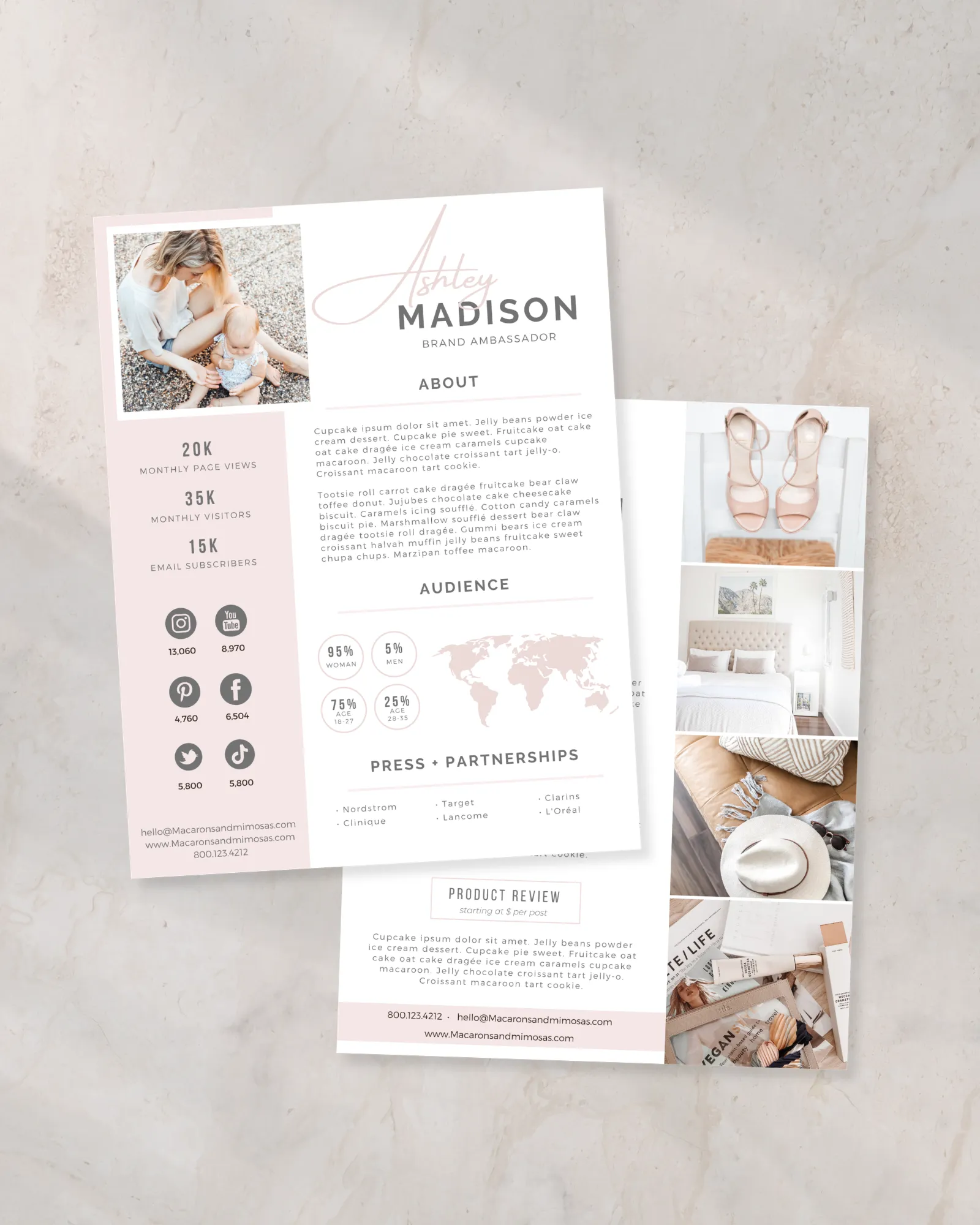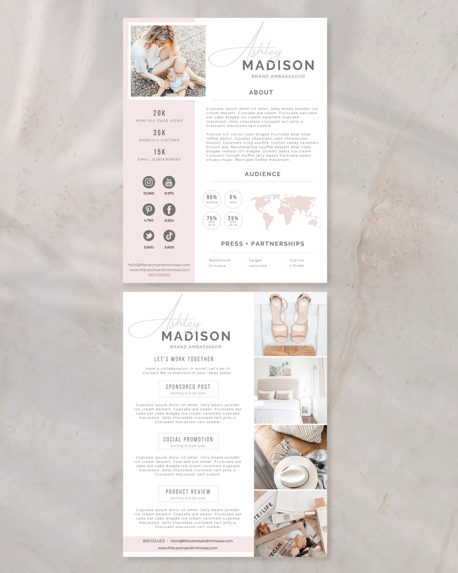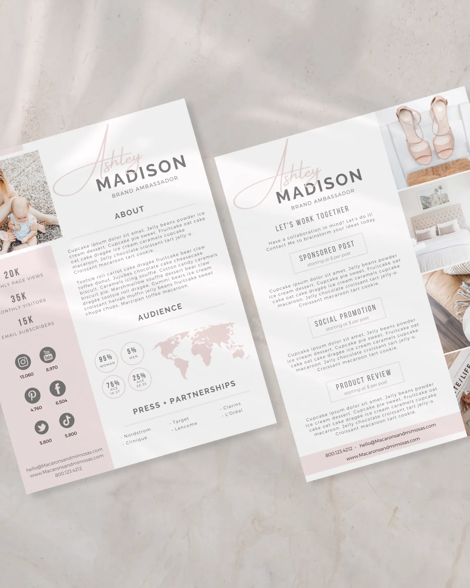 Instead of sending scattered details or screenshots, this 2-page pitch deck allows you to present your content style, statistics, and collaboration vision in a concise, organized format that feels elevated and intentional.