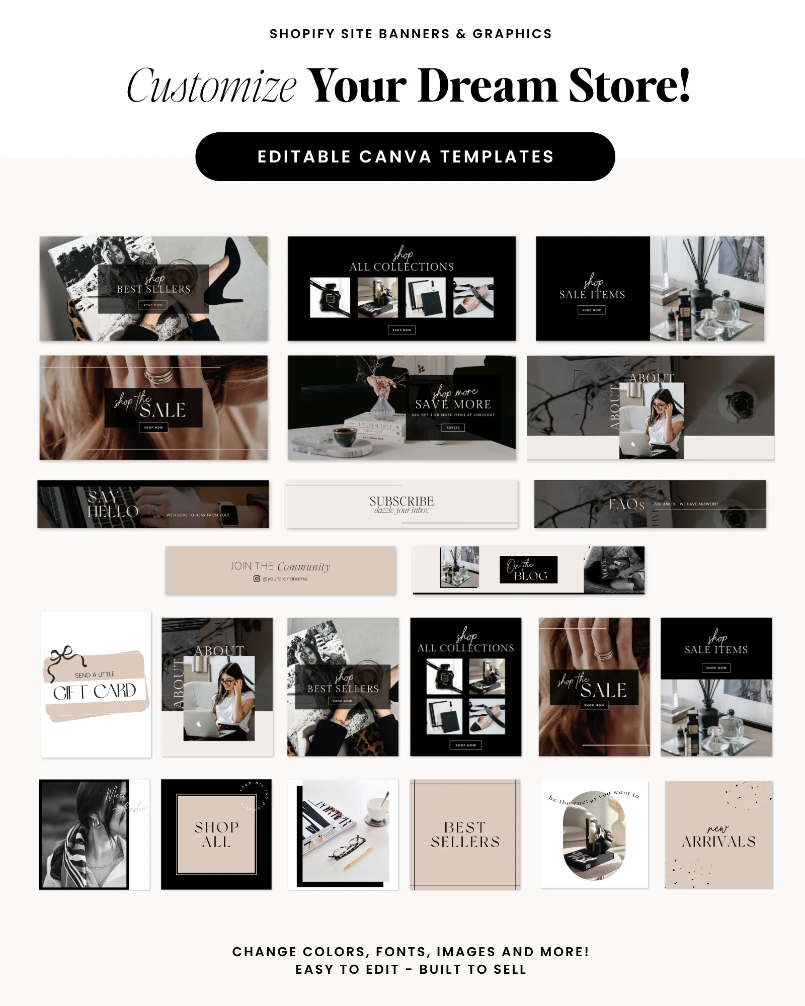 You’ll receive the full Shopify theme file, access to all included templates/pages, built-in features, and documentation to guide you through setup. Some themes also include Canva banner templates and bonus layouts (this is always listed on each product page).