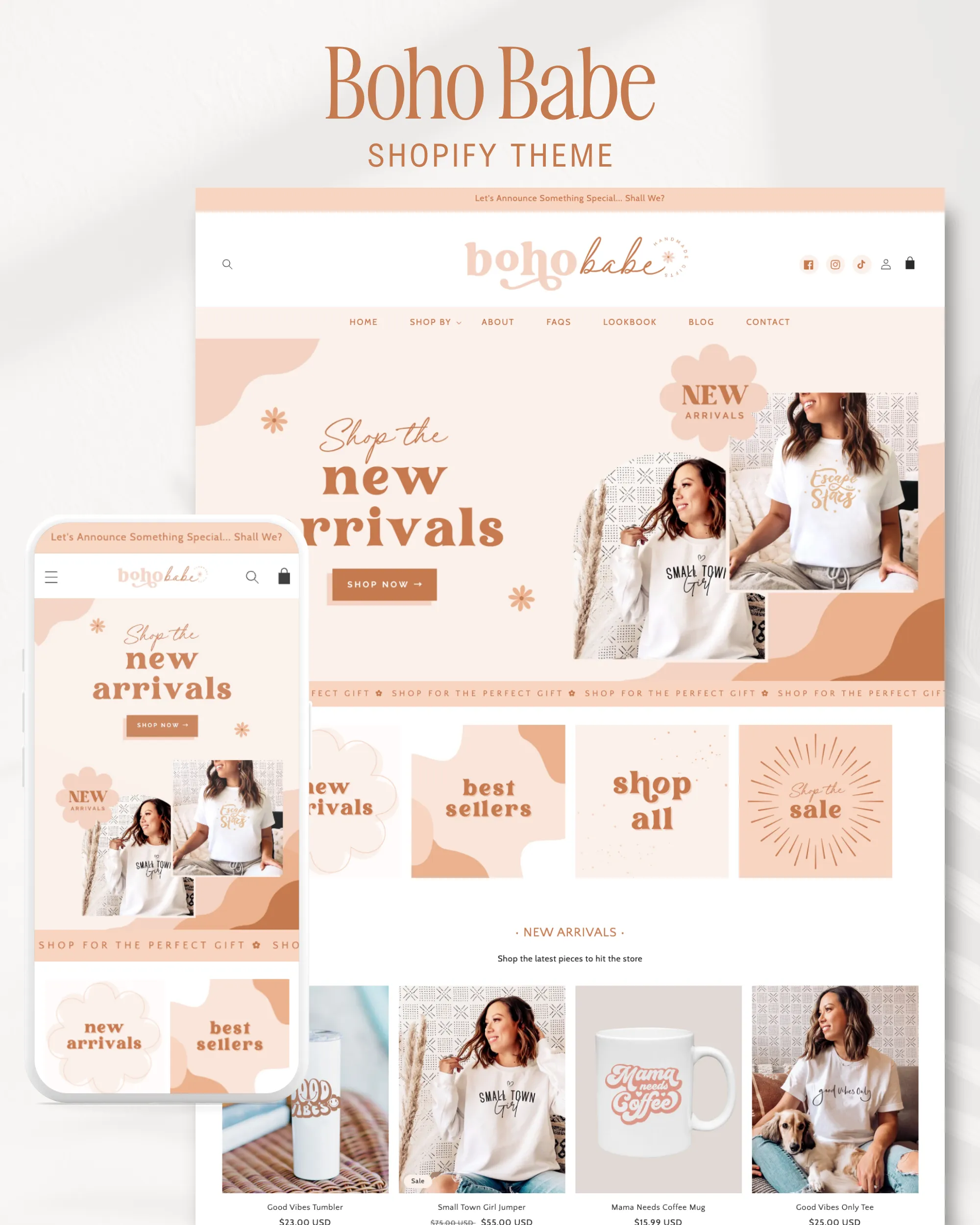 Boho Babe is a modern neutral Boho Theme for Shopify designed for small businesses, handmade brands, boutiques, and creative entrepreneurs who want a calm, stylish, and soulful online presence. With soft pastel tones, subtle spiritual elements, and an airy, minimalist layout, this theme feels warm, inviting, and effortlessly on brand.