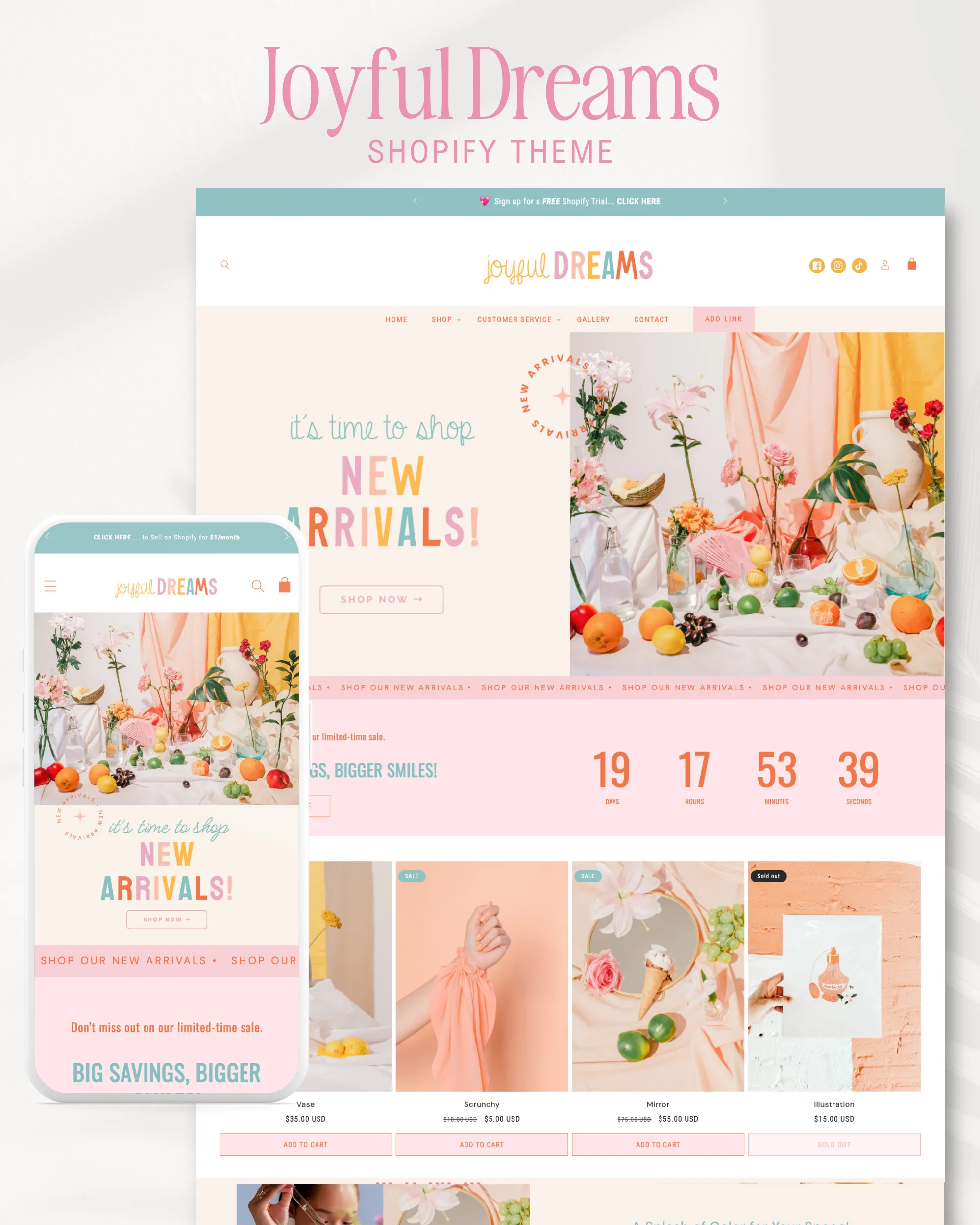 Your purchase includes instant access to the Joyful Dreams customizable Shopify theme and all included demo content.