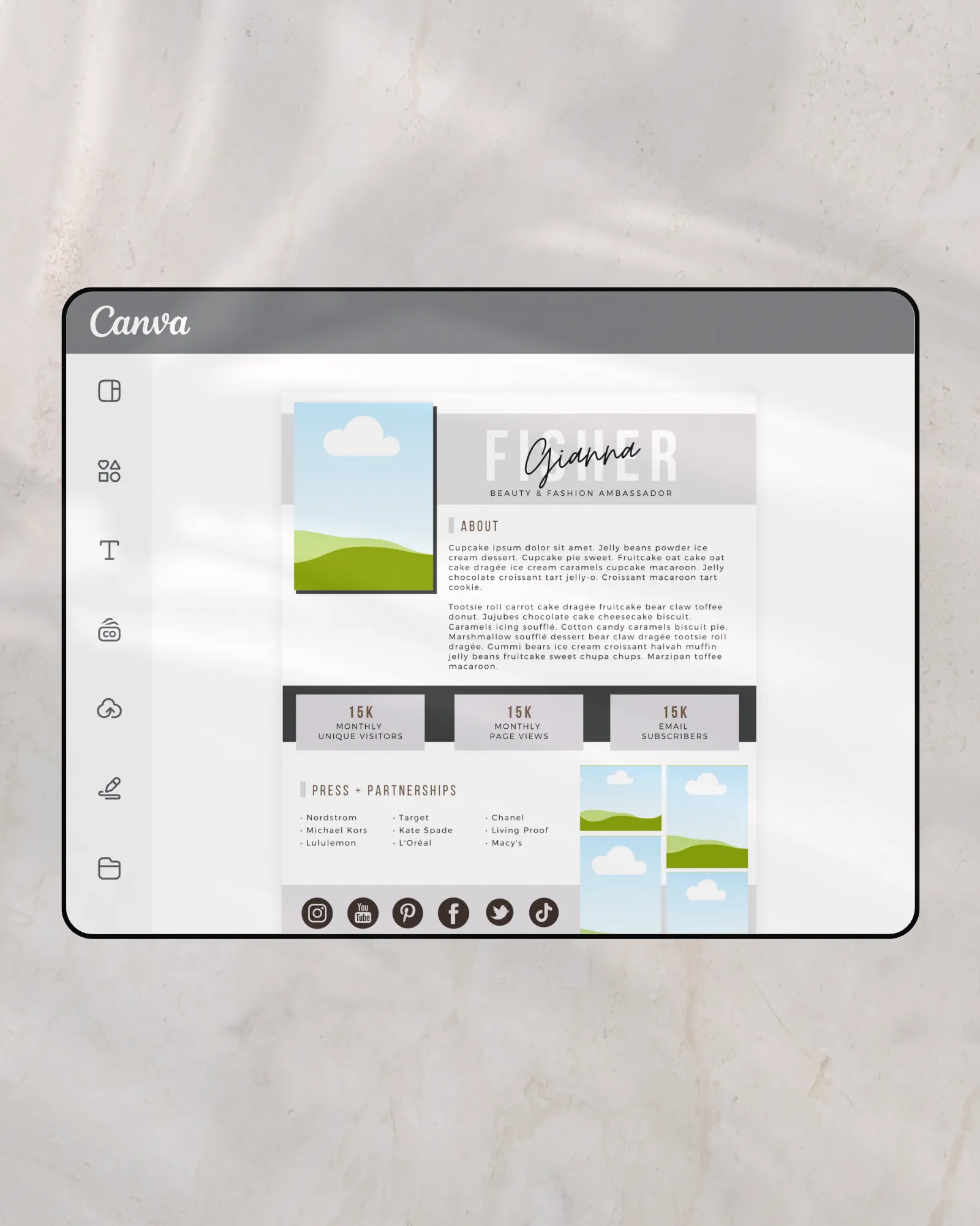 A Basic Knowledge of Canva is needed to edit the Canva Media Kits example. Customization is done by the purchaser.