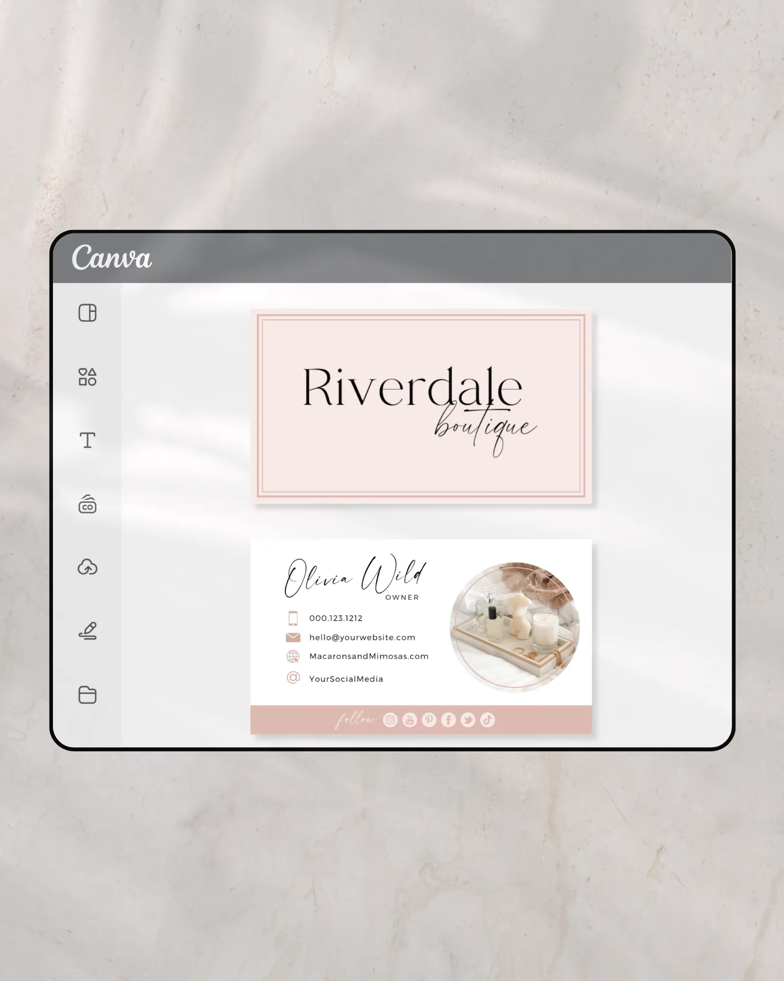 Take your branding to the next level with our Pink business Card Canva Template. Our easily customizable canva business card template helps you to market your brand and showcase your stunning photos.