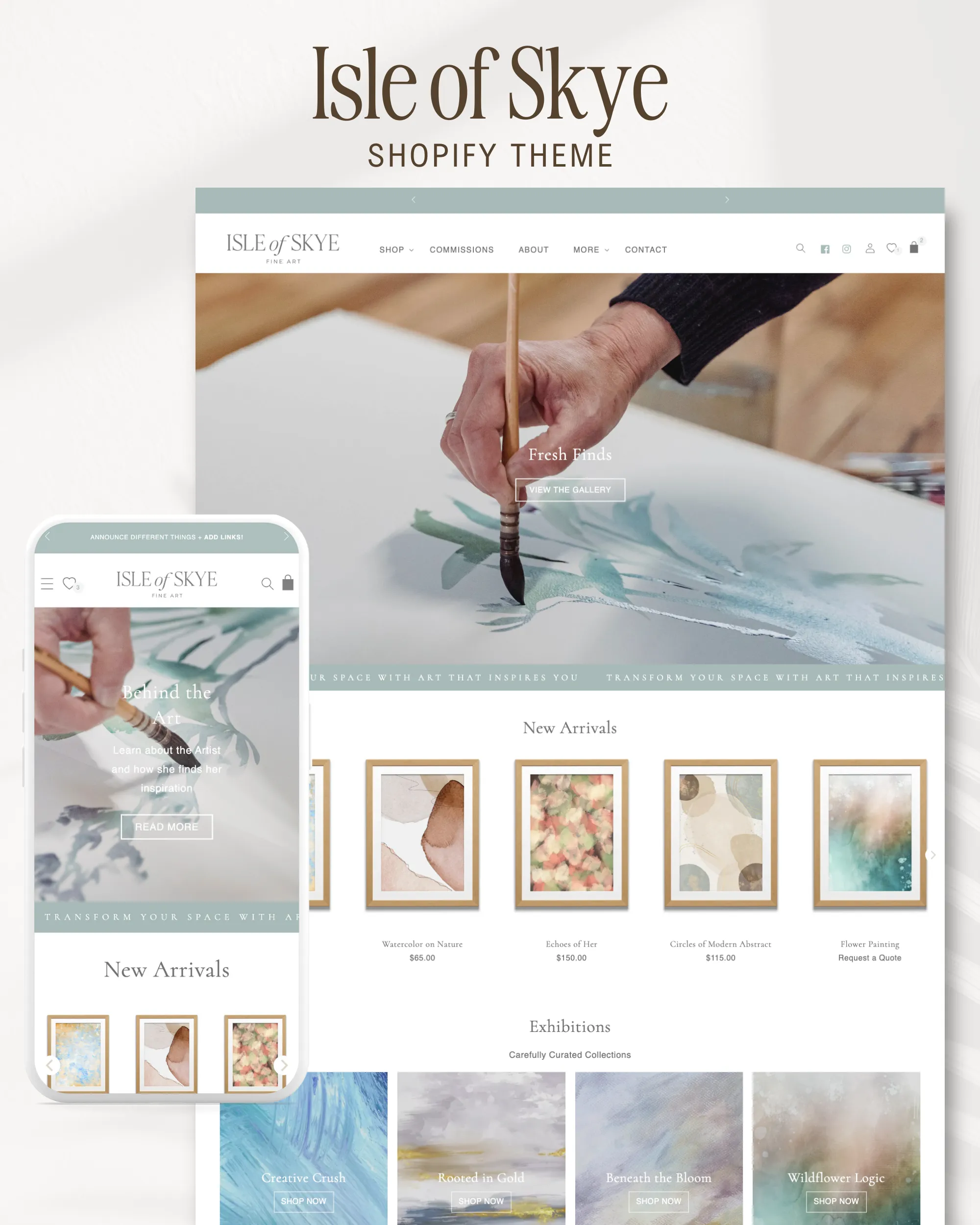 Isle of Skye includes flexible sections, advanced built-in features, and fully customizable colors, fonts, and imagery so you can shape the design to reflect your artistic style with ease. It is designed for painters, illustrators, photographers, and creative professionals who want a professional online presence without complexity. Whether you sell originals, prints, commissions, digital downloads, or services, this artist website gives you a storefront that feels refined, expressive, and built to grow with your work.
