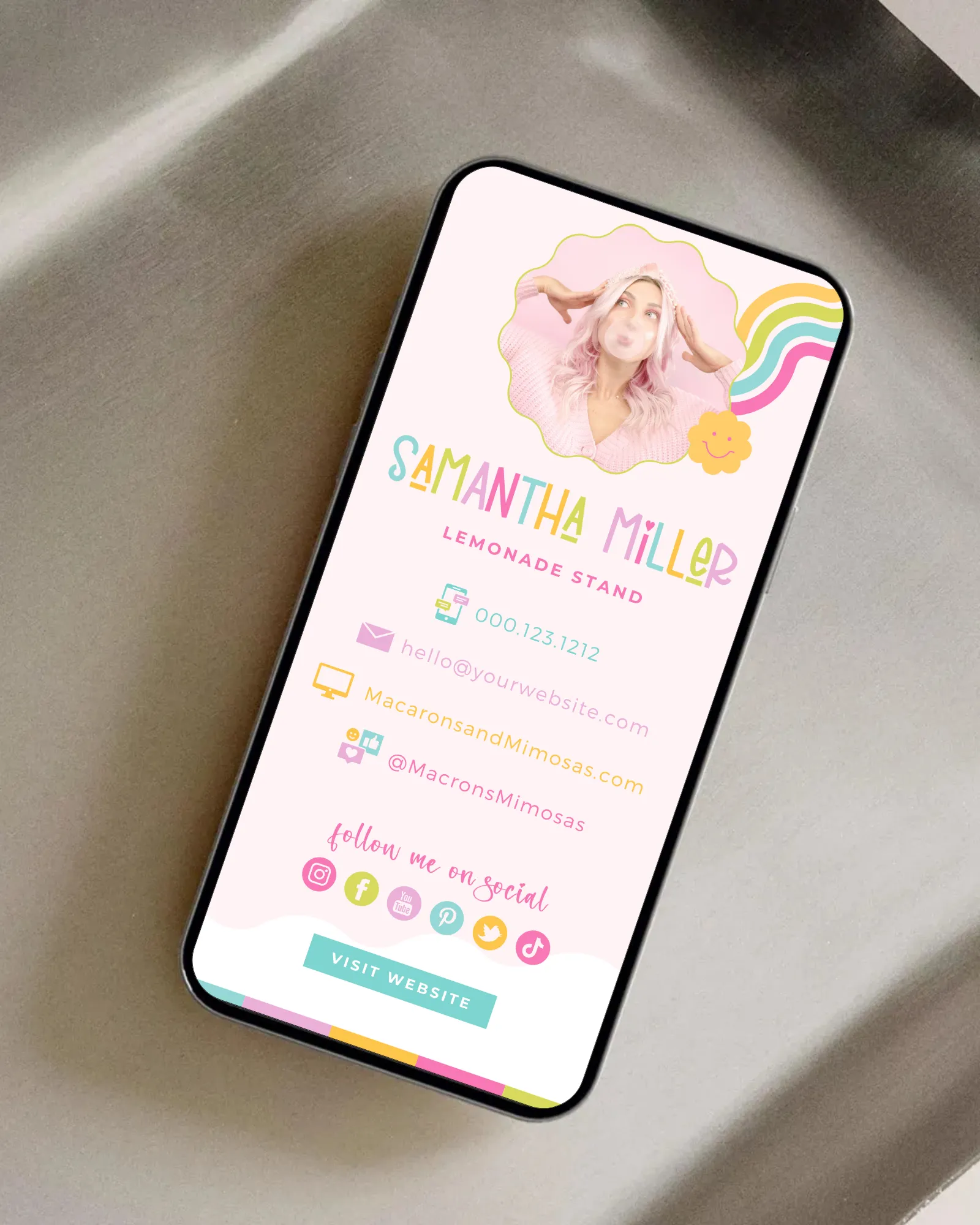 Take your branding to the next level with our bright rainbow digital business card template. Our easily customizable canva business card template helps you to market your yoga and wellness brand while showcasing your stunning photos.