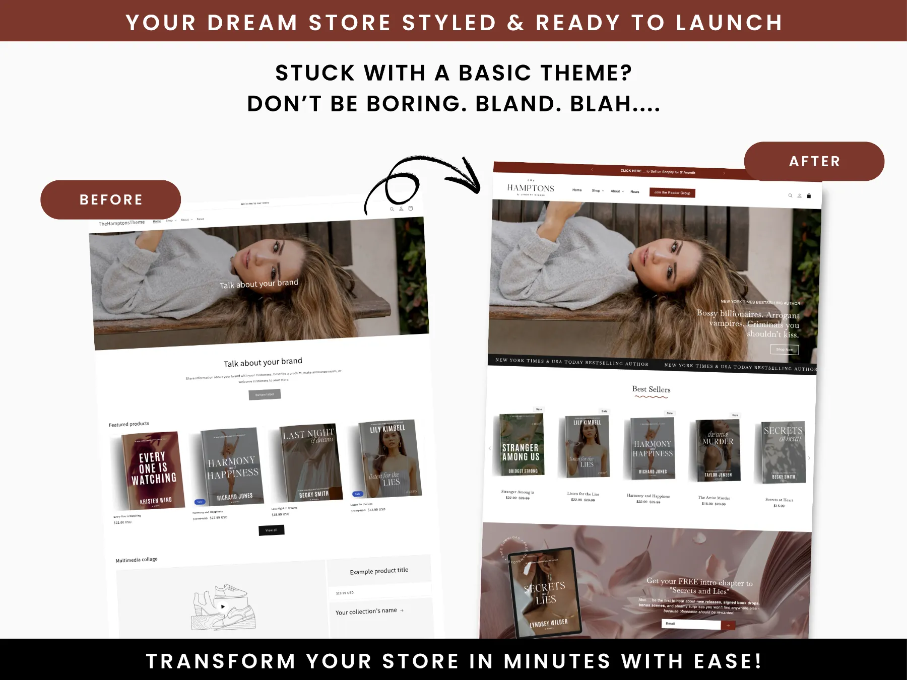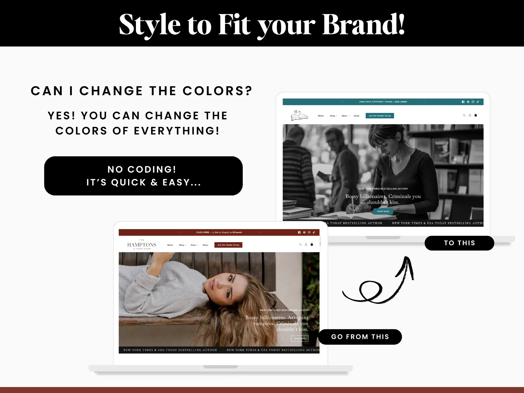 Our designs make it EASY for you to update the page content through the Shopify drag and drop editor – the colors, fonts, update banners, your logo, you can also restructure and rearrange parts of the layout, you also have the ability to complete delete sections.