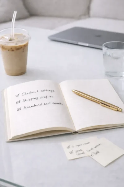 - Review backend settings (taxes, shipping, payments, checkout)